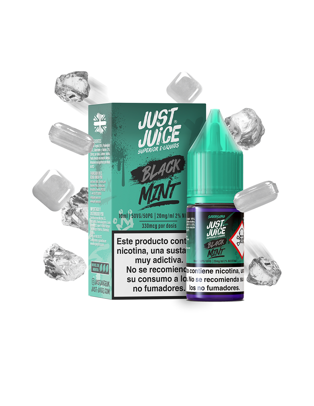 Sales de nicotina Mint Range Black Just Juice 10ml con menta intensa y frescor profundo. Disponibles en 10, 15 y 20 miligramos, ideales para pods y vapeo MTL.