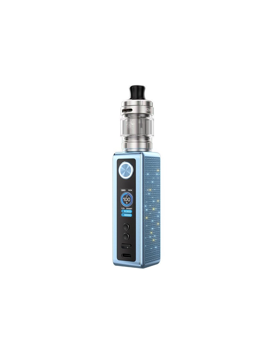 El Voopoo Vinci Spark 100 Kit combina la versatilidad de un mod compacto con la potencia de un sistema todo-en-uno. Funciona con una batería 18650 (no incluida) y ofrece hasta 100 W de salida, integrando el depósito UForce-X Nano de 2 ml con rellenado superior y flujo de aire ajustable. Su construcción en aleación de aluminio y acero inoxidable garantiza durabilidad, mientras que su pantalla TFT de 0.96" y efectos de iluminación permiten un control claro y personalizado de la experiencia de vapeo.