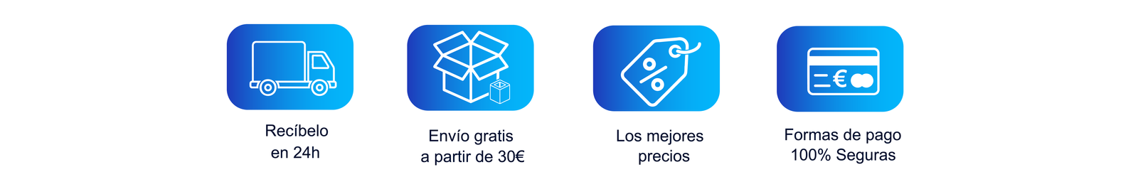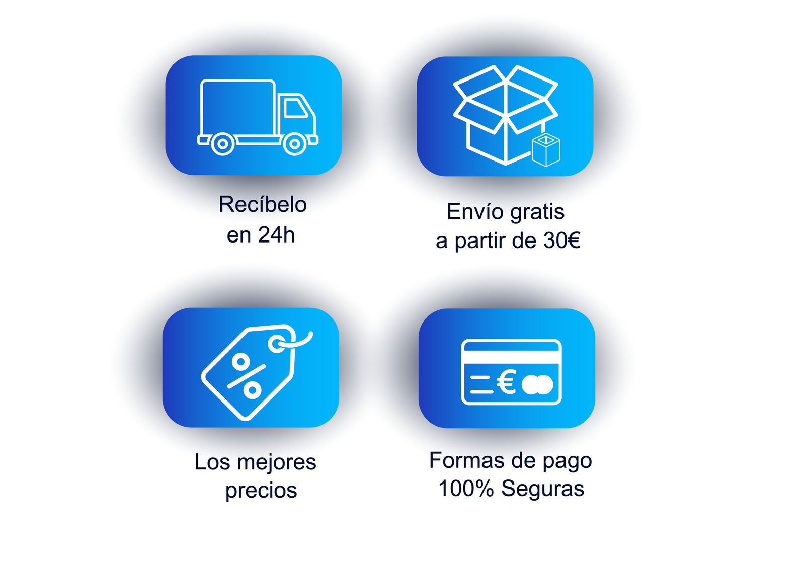 Toutes les commandes sont expédiées en 24/48 heures vers toute l’Espagne péninsulaire. Nous proposons aussi la livraison le samedi et le suivi de commande. Service disponible en France et Espagne.