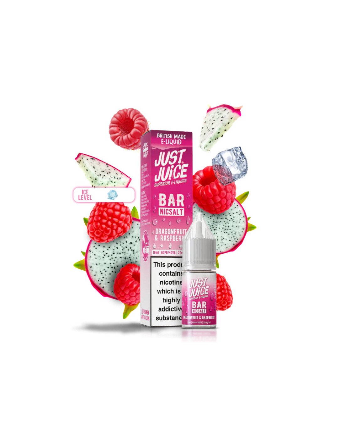 Dragon Fruit Raspberry Just Juice Bar Salts 10ml, sales de nicotina con sabor a fruta del dragón y frambuesa madura. Exótico, equilibrado y refrescante, ideal para pods MTL con base 50/50.